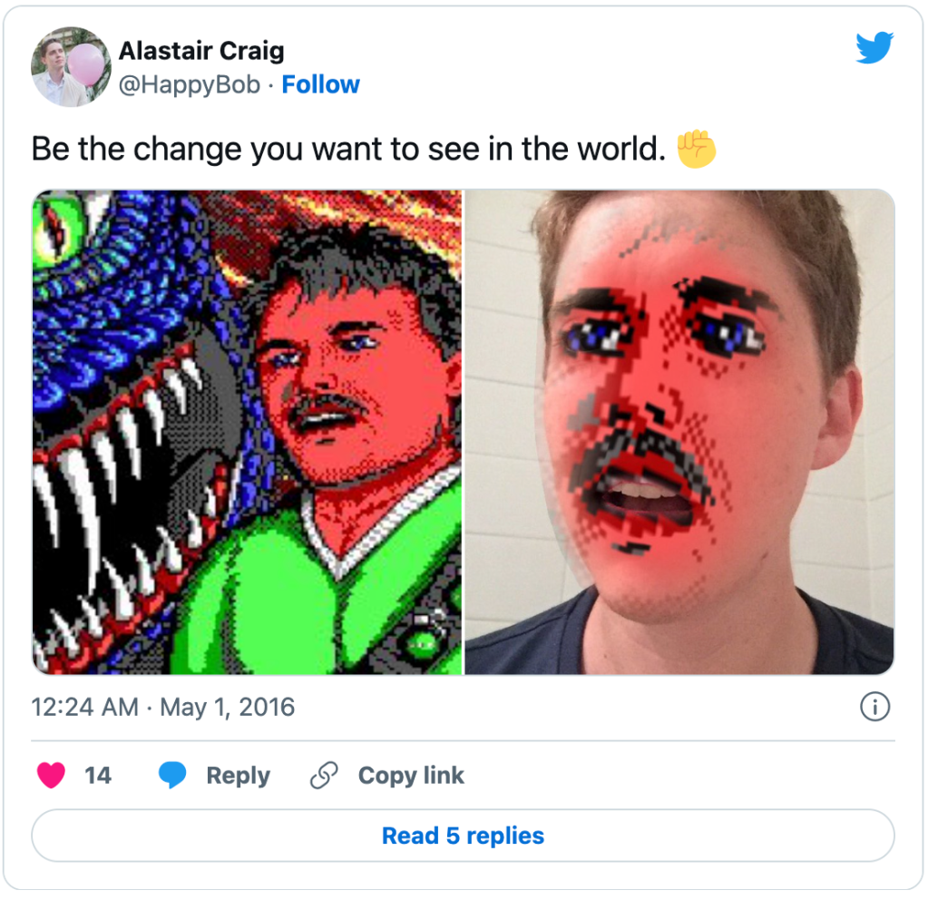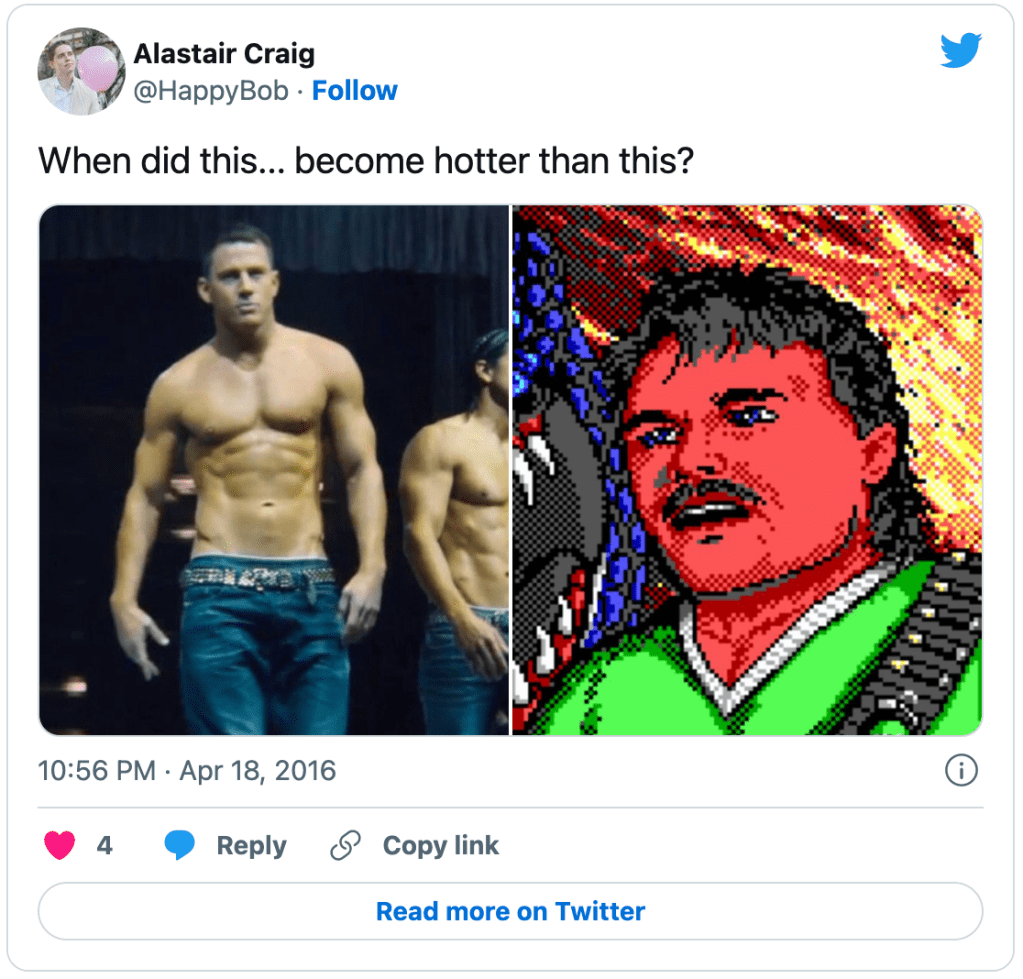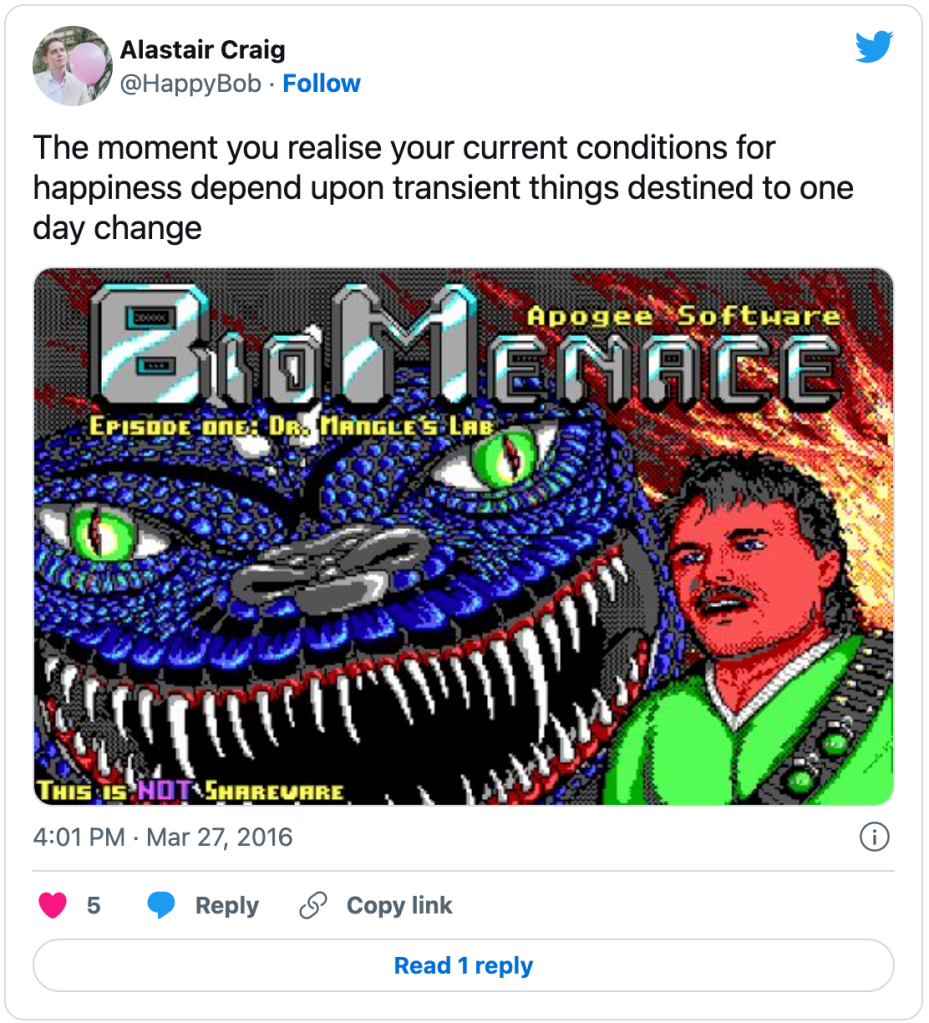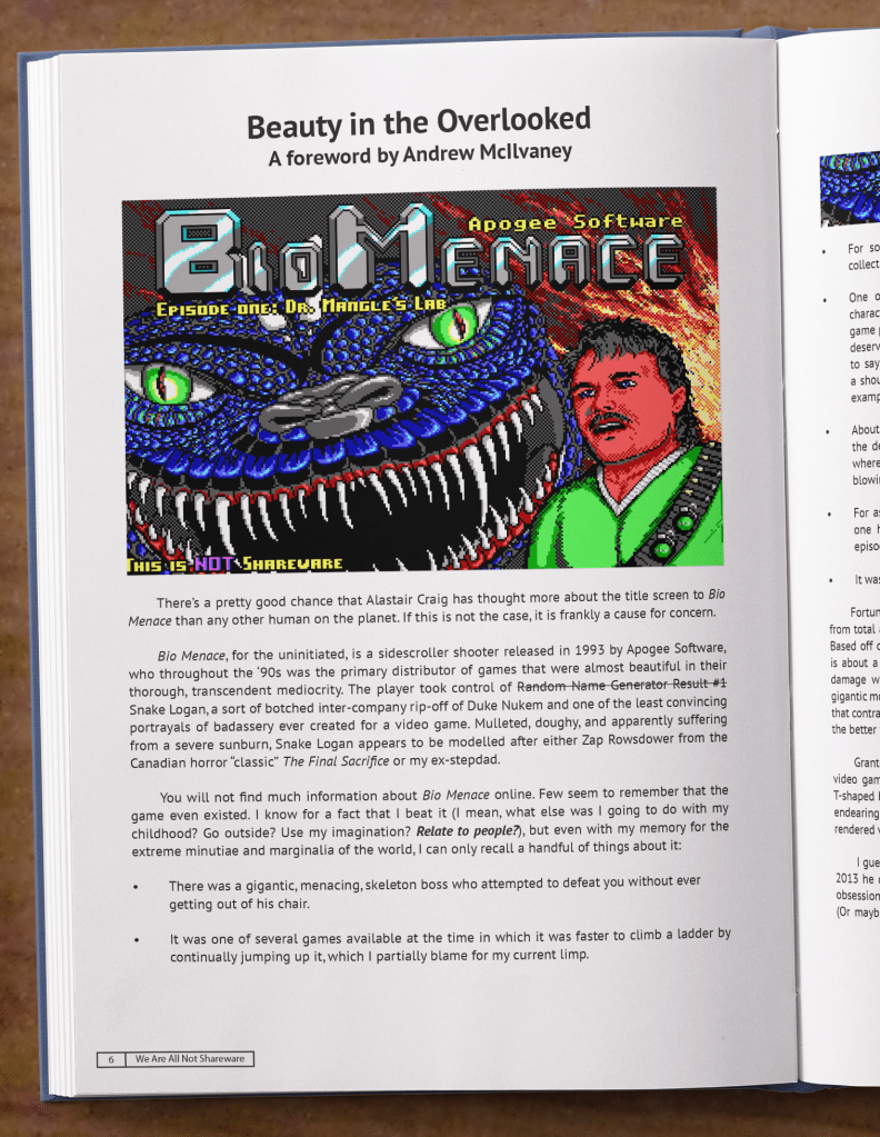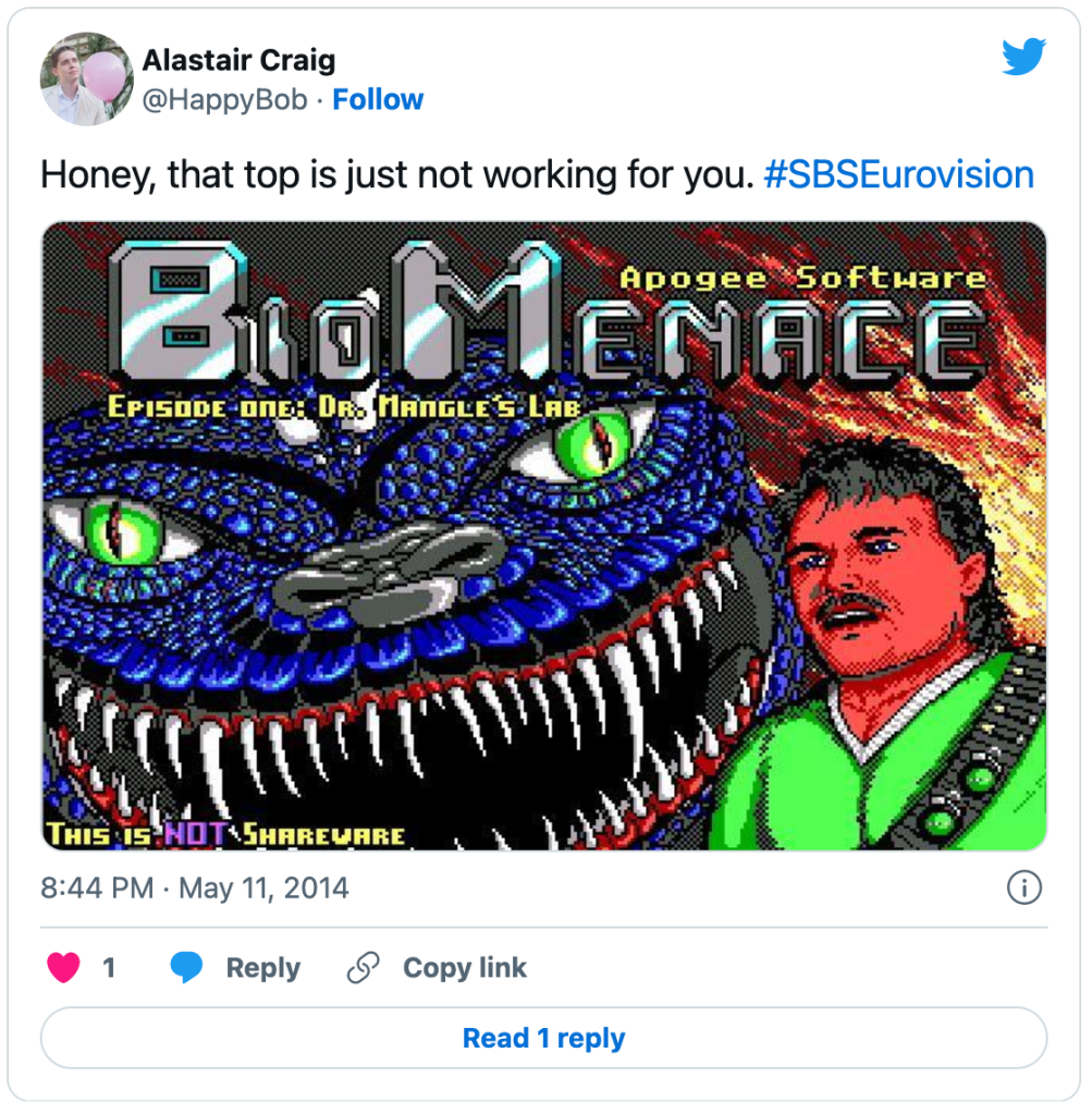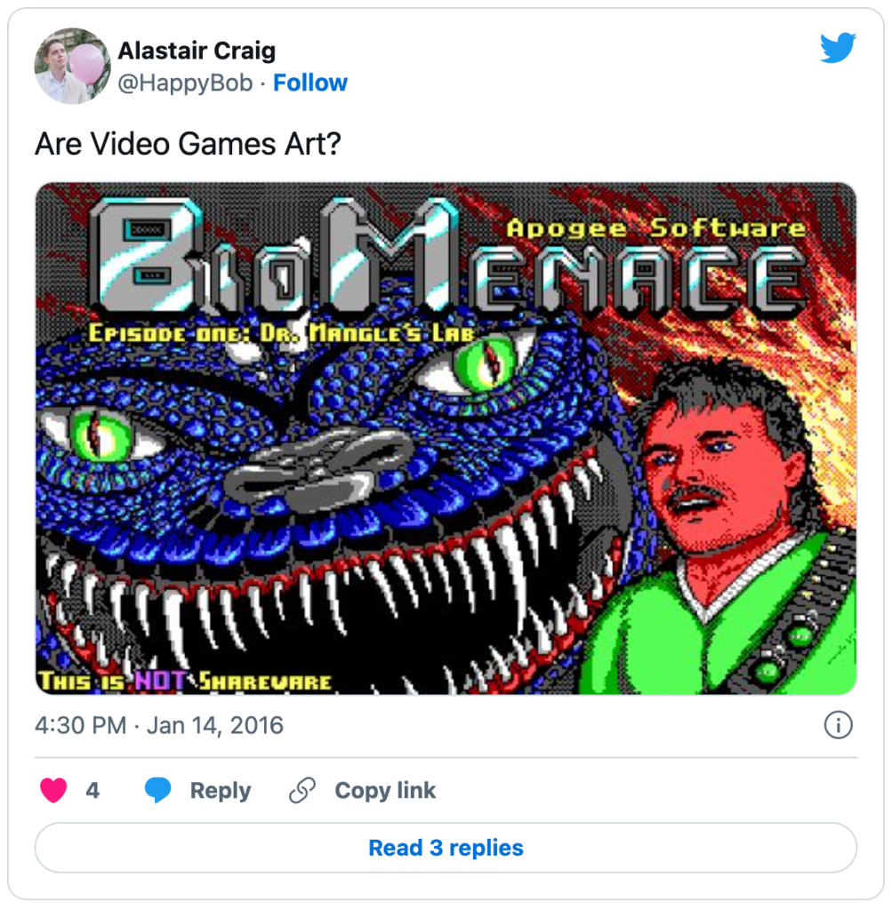 Since that fateful night, a small but ever-vigilant part of my brain has remained on standby over the years, doggedly scanning the world for every flimsy pretence to tweet out the title screen to Bio Menace.